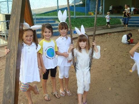 Os alunos puderam também vestir-se de roupa branca, usar algum adereço referente à data ou trajar-se de “Coelho da Páscoa”.