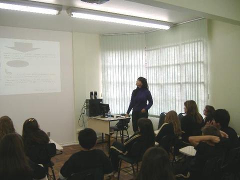 A palestrante citou dados importantes como: valor calórico, quantidade indicada, perigos com excessos, diferença entre chocolate diet e light. Segundo a nutricionista, foi uma surpresa falar com alunos tão jovens e tão interessados em estudar um assunto que passa muitas vezes despercebido nesta idade.
