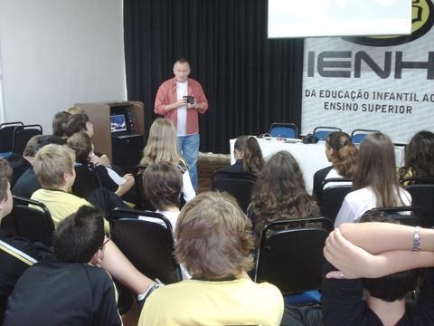 Na tarde do dia 27 de abril, os alunos da 7ª série B da IENH – Unidade Fundação Evangélica participaram de palestra e mini-oficina sobre fotografia. O momento foi organizado pela professora Sofia Leila Hoffmeister de Azevedo e teve o objetivo de instrumentalizar os alunos para que tenham êxito ao fotografarem atividades envolvendo movimento, luz natural intensa, ventos e outros elementos comuns nos ambientes dos esportes.