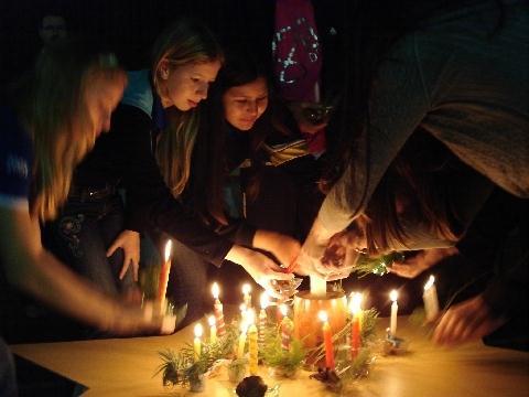 Para finalizar a atividade ocorreu a Meditação final, que foi coordenada pelo Pastor da IENH – Júlio Cézar Adam. Adam falou, a partir do Versículo Mateus 5. 14 – 16, sobre a luz que as pessoas devem ser uma na vida das outras. Para ilustrar essa luz foram utilizadas velas, acessas pelos alunos e colocadas em uma estrela. Essas velas foram organizadas pelos alunos durante as aulas de Ensino Religioso e simbolizaram uma das velas da coroa de advento.