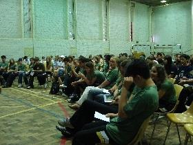 Em seguida, o representante dos pais dos alunos da 8ª série – Valdir Schmitz (pai da aluna Danuse Opitz Schmitz – 8ªC) falou para os estudantes. Para Schmitz, os alunos das 8as séries formam um grupo heterogêneo, cada um com suas peculiaridades, o que segundo ele forma a sociedade.