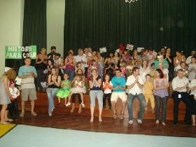 Para finalizar a apresentação, os alunos cantaram a música “Nas Asas da Imaginação” e convidaram os pais para subirem ao palco e cantarem junto com eles.