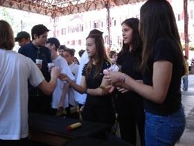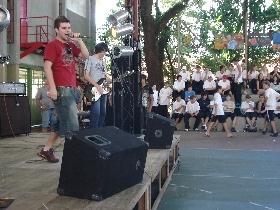 Durante o recreio estendido, os alunos do Ensino Fundamental e Médio da Unidade se divertiram ao som da Banda Terapia (de São Leopoldo), degustaram cachorros-quentes e refrigerantes oferecidos pelo GECA.