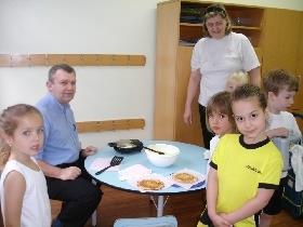 No final da visita foi preparado um lanche especial para a turma. Os alunos comeram "waffel" feitos na hora.