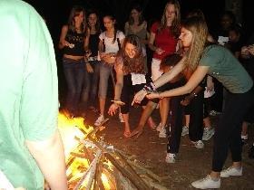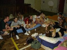 Durante o Acampadentro, o grupo se reuniu em volta de uma fogueira para cantar e conversar. Além disso, eles jogaram cartas e em seguida foram dormir no Auditório da Unidade, onde foi montado o “acampamento”.