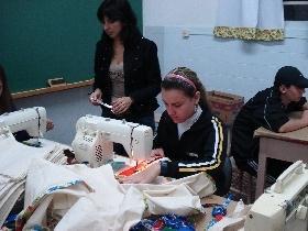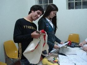 As sacolas são produzidas com os seguintes materiais: lona e chita, são feitas em dois tamanhos e em diversas cores. Além de fabricar, os estudantes comercializam as sacolas na escola e estão procurando mercados que desejem comprar os produtos.