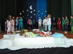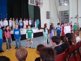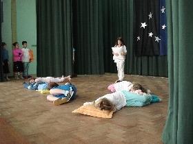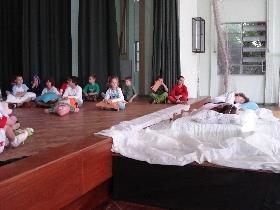 A Hora Cívica foi apresentada pelas turmas como se fosse um sonho de crianças. Durante o “sonho”, os alunos falaram trechos do livro e os direitos das crianças segundo a autora. Entre os direitos citados estavam: de perguntar, de brincar, de jogar bola, de andar descalço, de falar “pelos cotovelos”, de ouvir histórias, de ser feliz, de sonhar...
