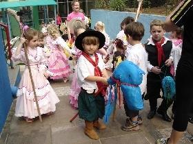 Já no dia 03/10 foi a vez das turmas da Educação Infantil do turno da tarde realizarem a Cavalgada. A atividade também iniciou com o canto do Hino do Rio Grande do Sul e em seguida os alunos ouviram o professor de Educação Física – Renato Pinto de Carvalho declamar poesias gauchescas. Após, ocorreu a Cavalgada, onde os estudantes foram acompanhados por dois cavalarianos carregando a bandeira do Rio Grande do Sul. Para finalizar a atividade foi realizado um lanche coletivo.