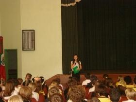 Em seguida aconteceu a apresentação da aluna da IENH – Unidade Fundação Evangélica e ex-aluna da Unidade Pindorama, Letícia Kuntze Cassel (2ªB). Letícia relatou sua experiência como presidente do GEPI em 2002 e como integrante do Grêmio Estudantil Castro Alves – GECA da Unidade Fundação Evangélica em 2007. Letícia falou para os estudantes sobre a importância do comprometimento dos alunos que integram um Grêmio Estudantil e explicou para os alunos como funcionava o GEPI na época de sua gestão.