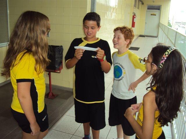 As professoras elaboraram uma gincana onde os alunos precisavam encontrar as agendas de 2012, charadas para descobrir os horários de cada turma para 2012 e outras atividades de integração.