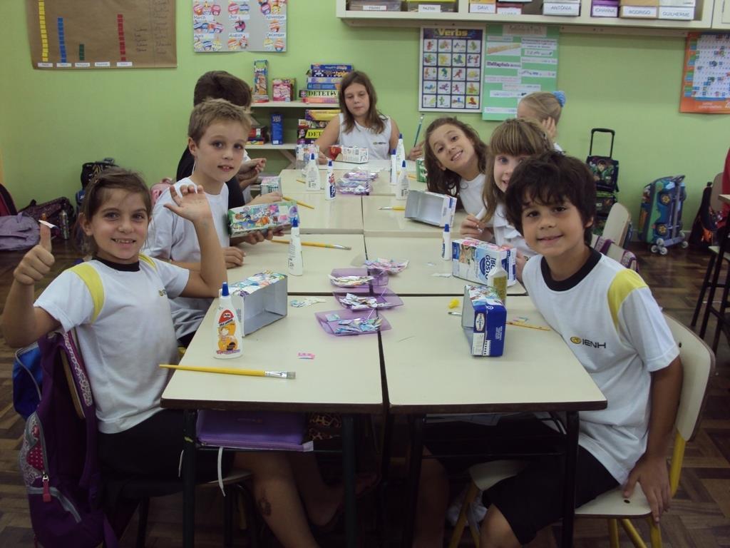 Reaproveitando caixinhas de leite, os alunos do 3º ano A da IENH – Unidade Oswaldo Cruz confeccionaram seus ninhos de Páscoa.