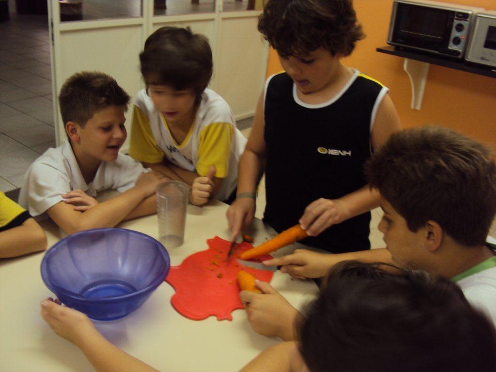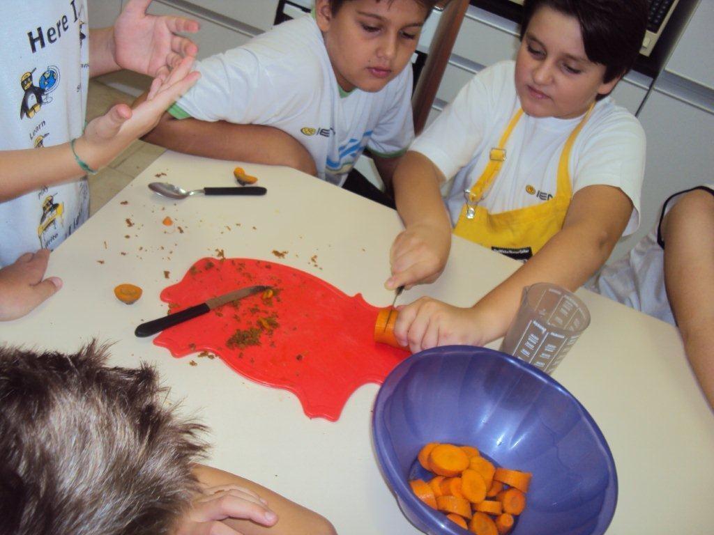 Os alunos do 6º ano também participaram de uma atividade especial de Páscoa. Na cozinha da Unidade a turma preparou a receita de “Carrot Cupcakes”, bolinhos de cenoura incrementados com cobertura de doce de leite.