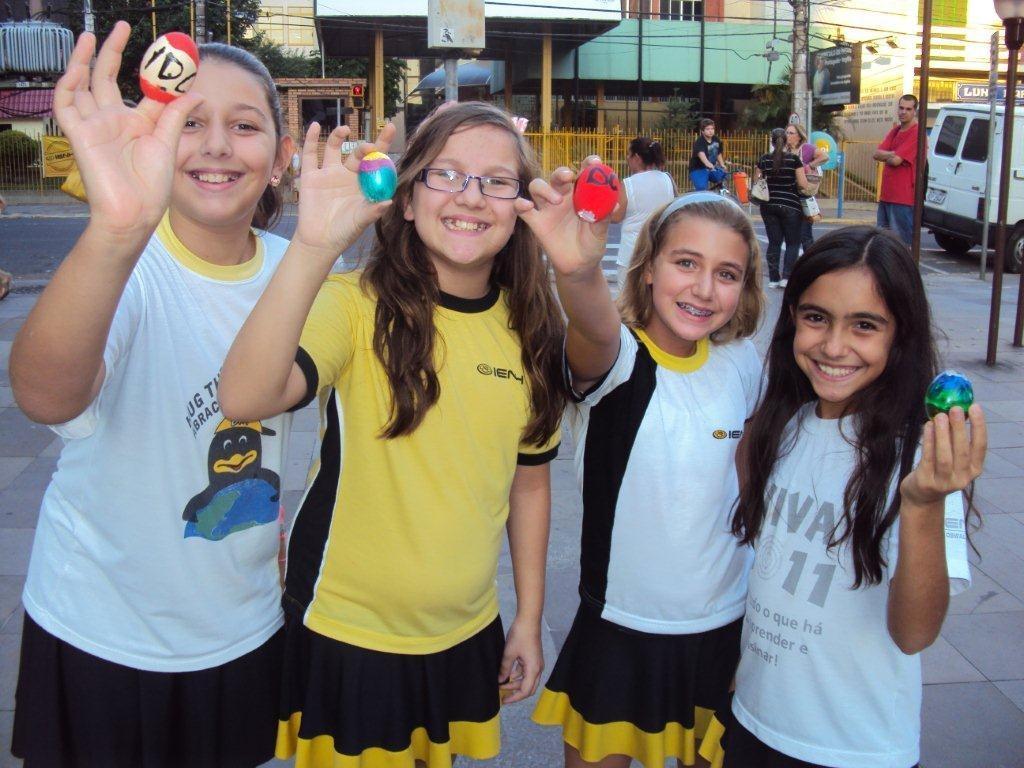 Nos dias 04 e 05 de abril, os estudantes dos 5ºs anos A e B da IENH – Unidade Oswaldo Cruz prepararam casquinhas especiais com mensagens de Páscoa para distribuir no Calçadão do Centro de Novo Hamburgo.