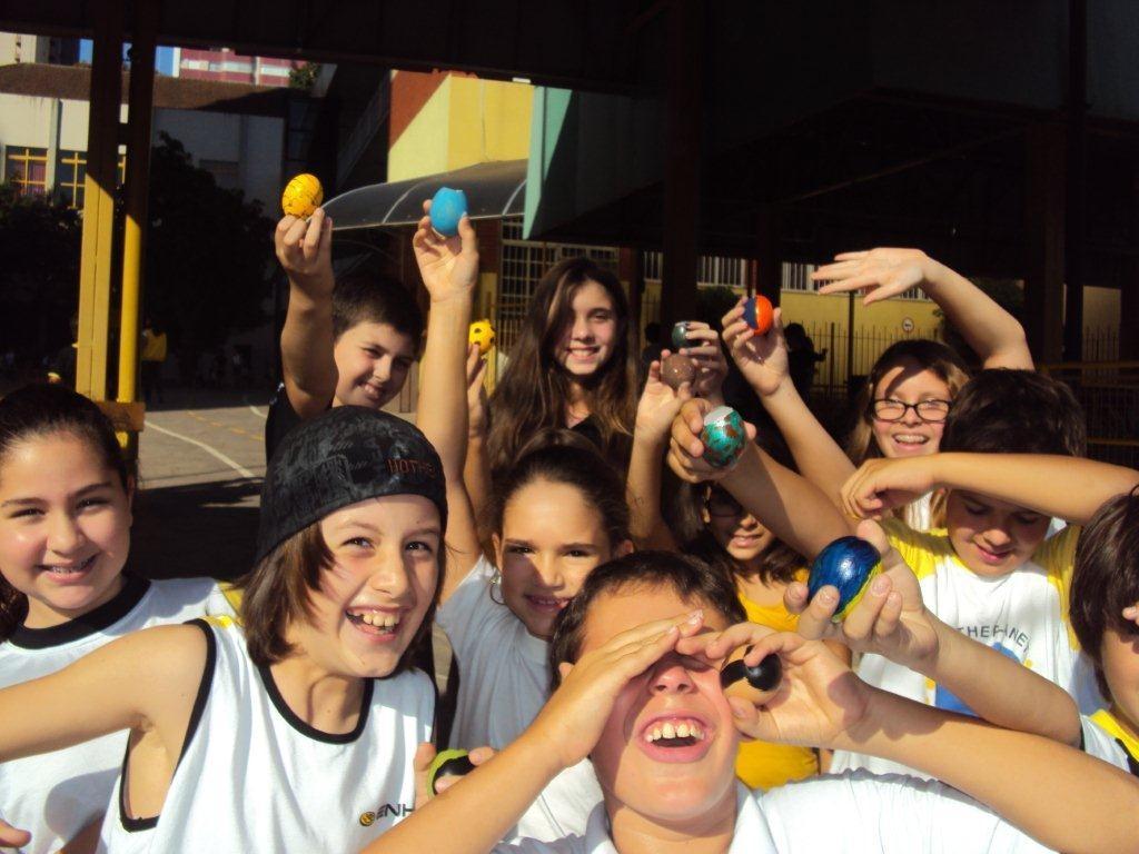Nas aulas de Artes com a professora Rita Mosmann os alunos fizeram as casquinhas de ovos decoradas para a Páscoa. Em religião, com o professor Marcelo Ackermann, a turma preparou uma mensagem de Páscoa para colocar nas casquinhas e na aula de Inglês, com a professora Daniele Bolzan, foram até o Calçadão para distribuir as casquinhas com mensagens para a comunidade.