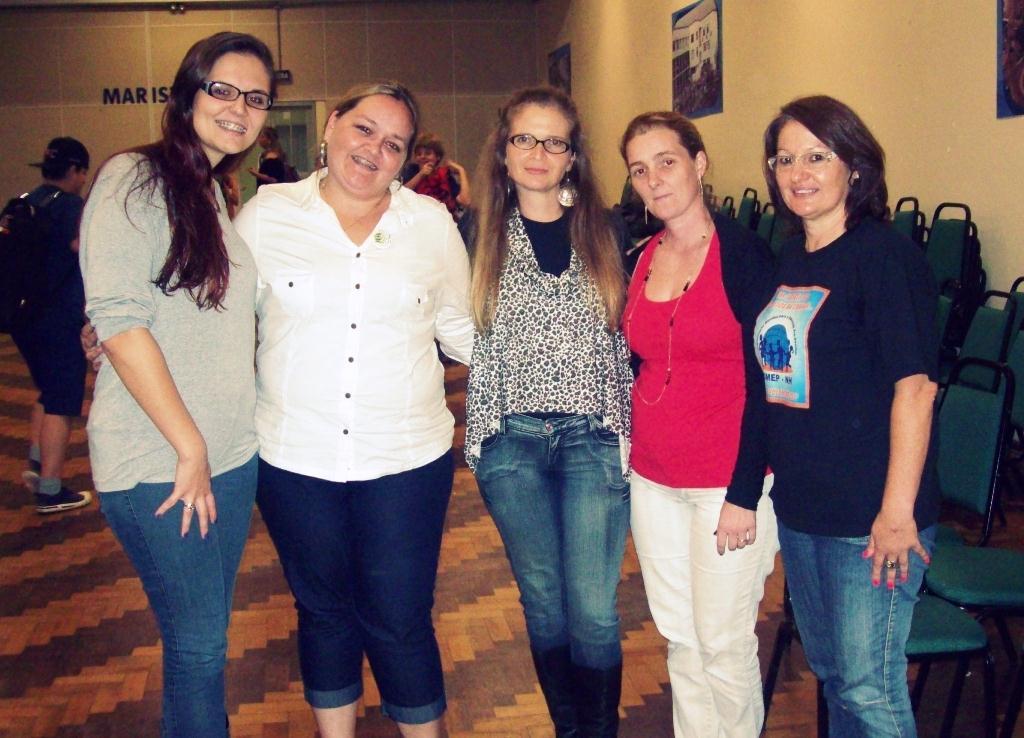 As professoras de Educação Infantil da IENH Gabriella Thais Schorn e Eneida Raquel Sander, e a professora do Espaço Brincar e Criar, Lúcia Juliana Cardoso, participam do evento.