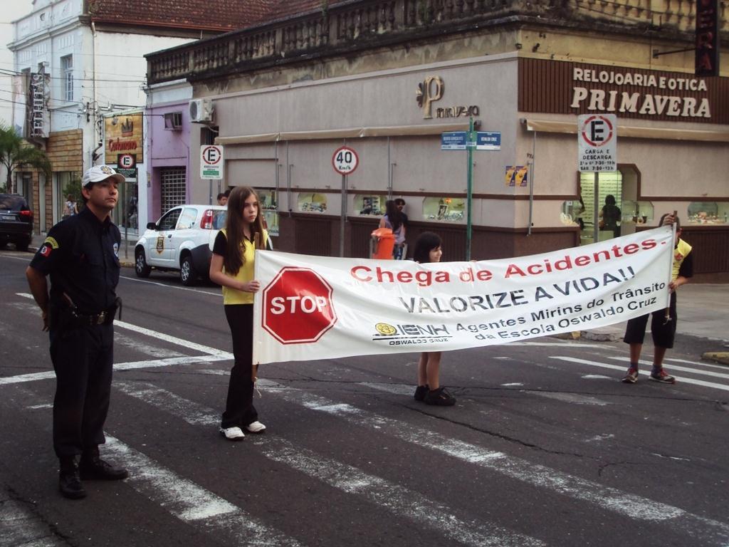 Os Agentes Mirins do Trânsito da IENH – Unidade Oswaldo Cruz realizaram a primeira panfletagem do ano no dia 20 de abril. O objetivo desse momento foi de promover a conscientização dos motoristas que pegaram a estrada no sábado de feriado