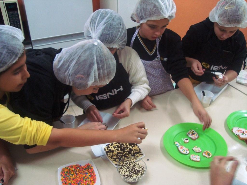 Estudantes do Currículo Bilíngue do 4º ano A da IENH – Unidade Oswaldo Cruz têm um projeto de parceria com as famílias, incentivando que os pais tragam suas vivências para a sala de aula. No dia 24 de abril, Karen Seger, mãe da Bruna, esteve na Unidade para dar uma aula de culinária