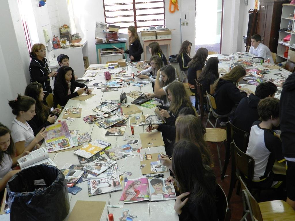 Com a supervisão da Orientadora Educacional do Ensino Fundamental – Marga Müller Rodrigues, esses recortes foram utilizados para personalizar um envelope que contém textos, documentos e trabalhos realizados por eles nas 6ªs e 7ªs séries sobre interesse e aptidões.