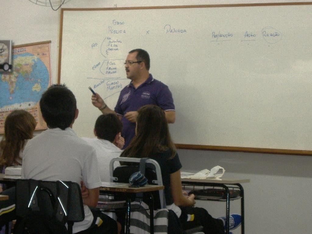 Dando continuidade as atividades referentes ao projeto semestral sobre segurança, os estudantes da 8ª série C, matriculados no Currículo por Projetos de Aprendizagem da IENH – Unidade Fundação Evangélica receberam o especialista em gerenciamento de riscos, José Luis Winter Oliveira.