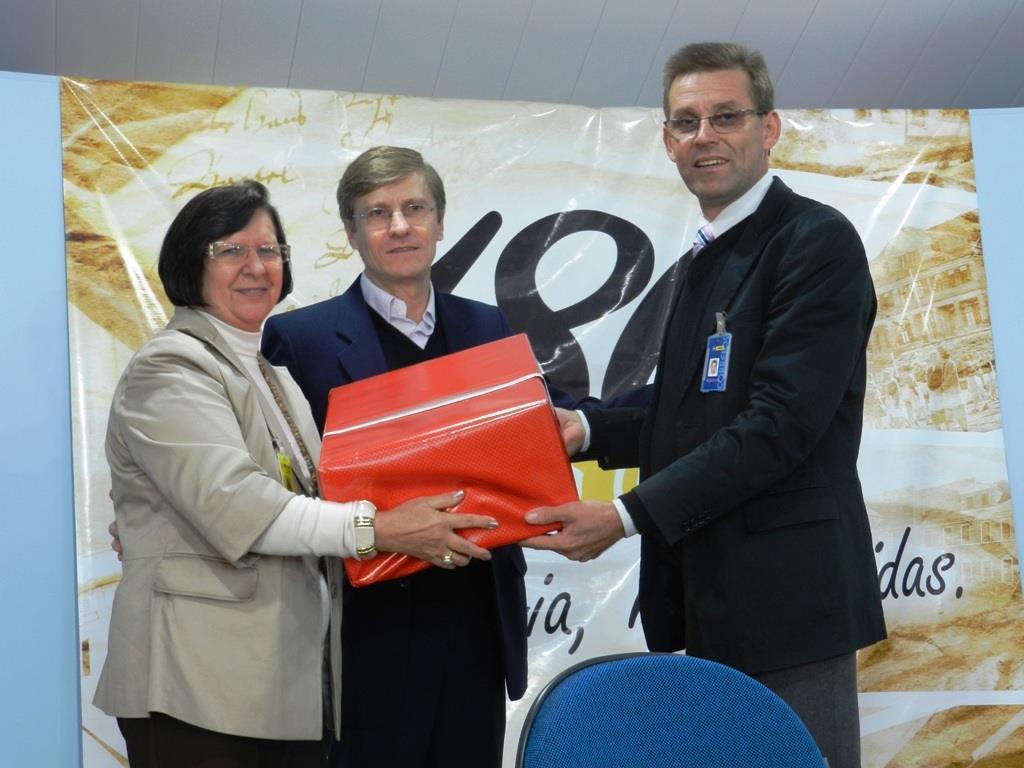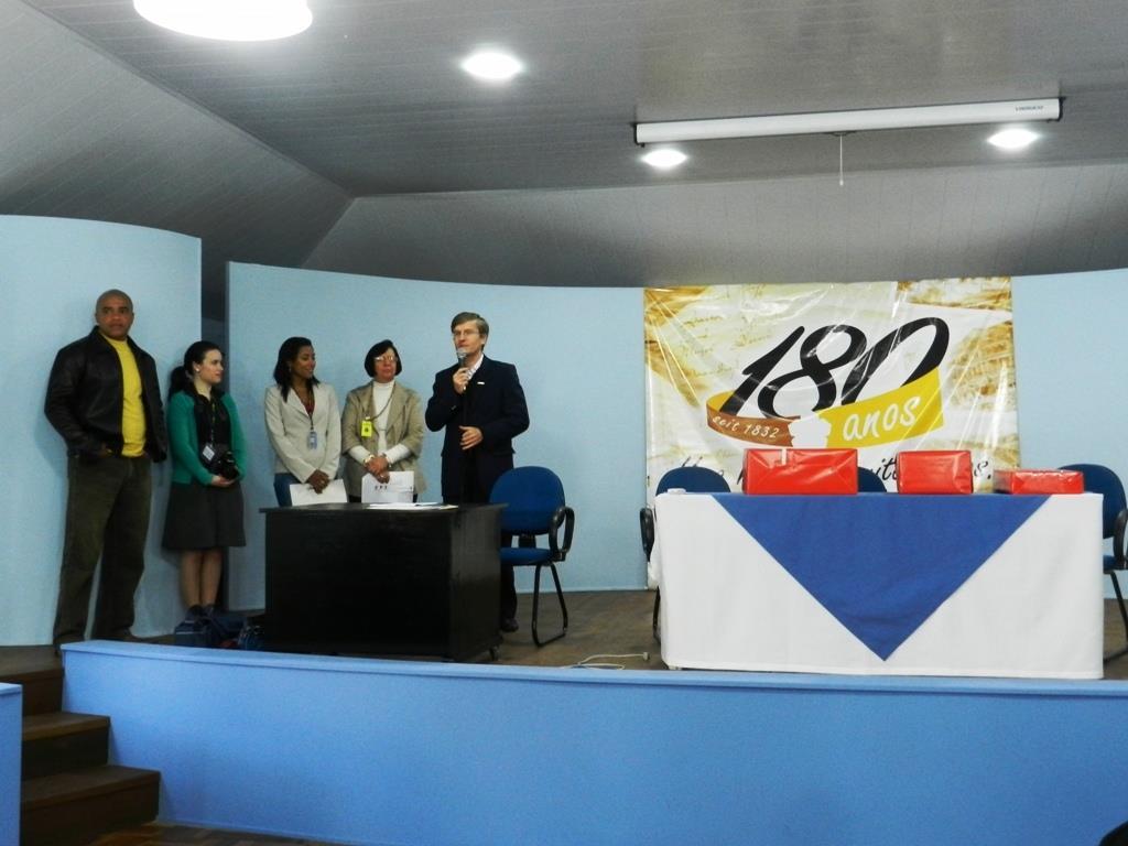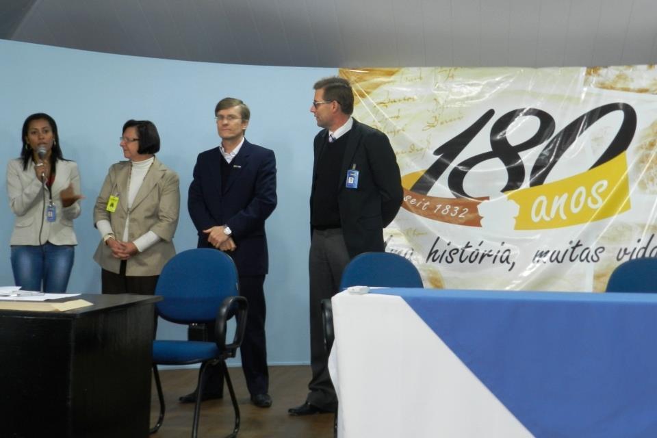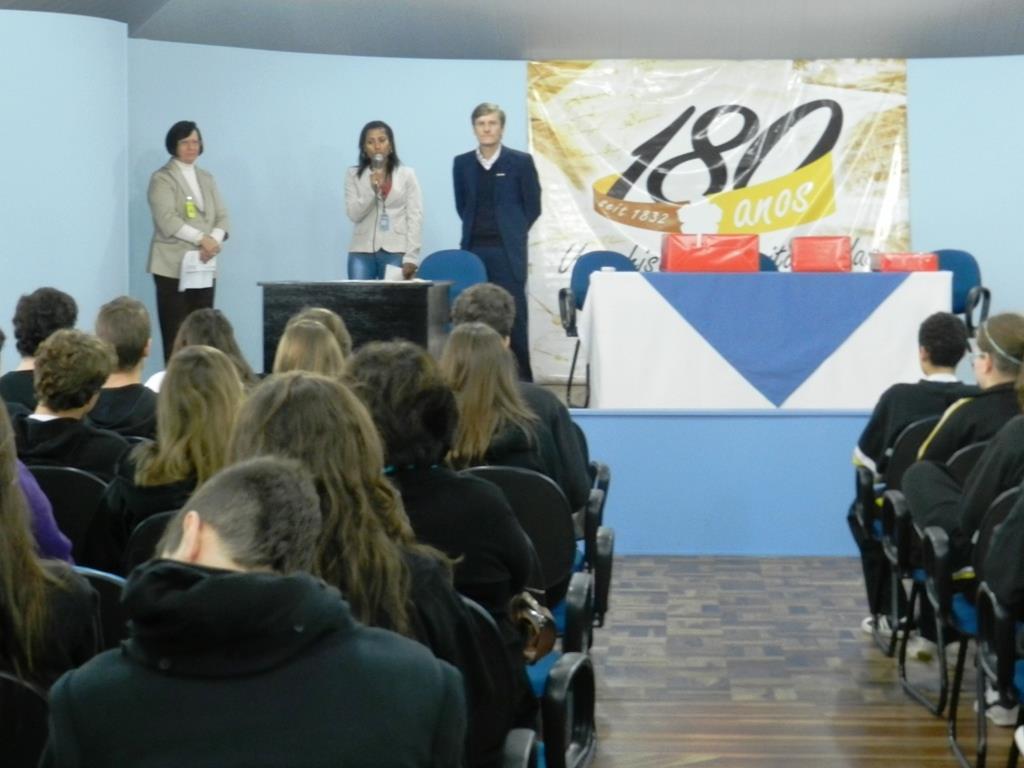 Durante a entrega estiveram presentes o Gerente Regional de Venda dos Correios de Novo Hamburgo – Clemente Krechowieki, a Assessora de Comunicação dos Correios – Lisandra Lemos, o Diretor Geral da IENH – Seno Leonhardt, a Coordenadora da Unidade Fundação Evangélica – Berlize Ko Freitag, representantes dos Correios, professores e estudantes das 1ªs séries do Ensino Médio da IENH.
