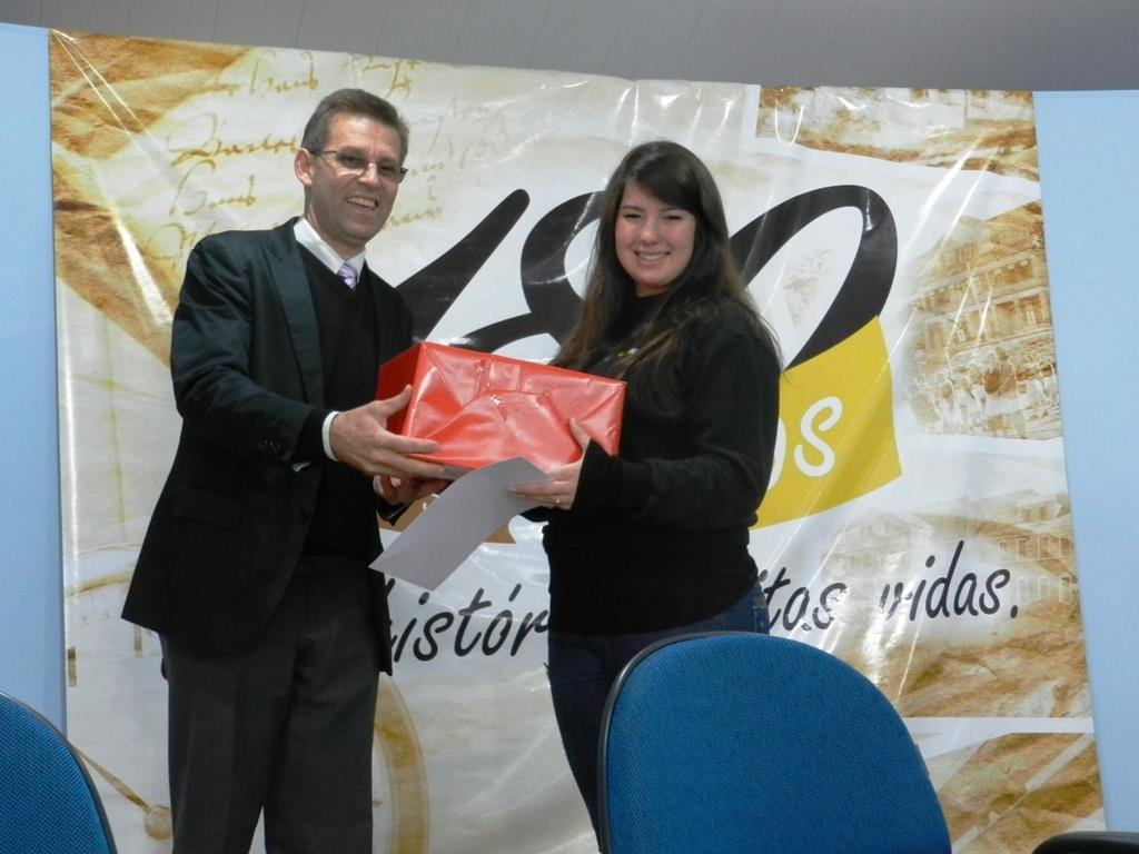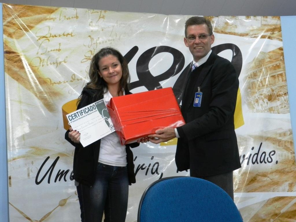 Larissa ficou em 1º lugar no concurso e recebeu um notebook e Ana Luiza, classificada em 2º lugar, ganhou um som portátil. A Instituição recebeu com a premiação das meninas um computador e uma impressora.