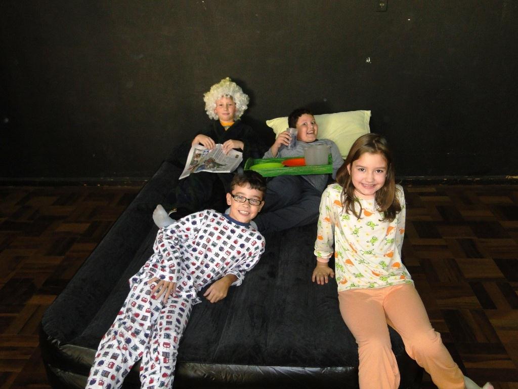A professora Letícia de Almeida propôs a releitura de um texto e, em grupo os estudantes organizaram as apresentações para os colegas realizando uma adaptação do texto proposto. As turmas ficaram felizes por poder aprimorar vários aspectos, como a pronúncia, o vocabulário, a compreensão auditiva e também o trabalho em equipe, através de uma atividade lúdica e muito significativa para todos. Durante este ano, outras encenações estão previstas, inclusive com a criação do texto por parte dos alunos.