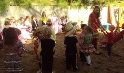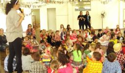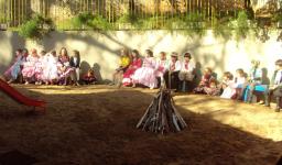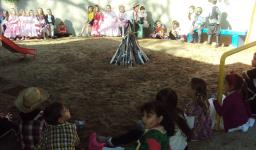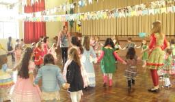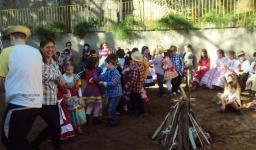 A festa começou no pátio, e as crianças estavam caracterizadas de caipira, gaúcho e prenda. Foram entoadas diversas canções, algumas turmas se apresentaram e a fogueira também foi apreciada.