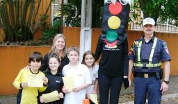 Além do Mascote Stop, o Agente de Trânsito da Guarda Municipal de Novo Hamburgo – Marino Rosado acompanhou a abordagem dos Agentes e reforçou as orientações dadas a comunidade escolar e local. A professora responsável pelos Agentes Mirins do Trânsito – Carolina Luisa Flesch auxiliou nesse momento e contou com o apoio do professor auxiliar Ezequiel dos Anjos Silva.