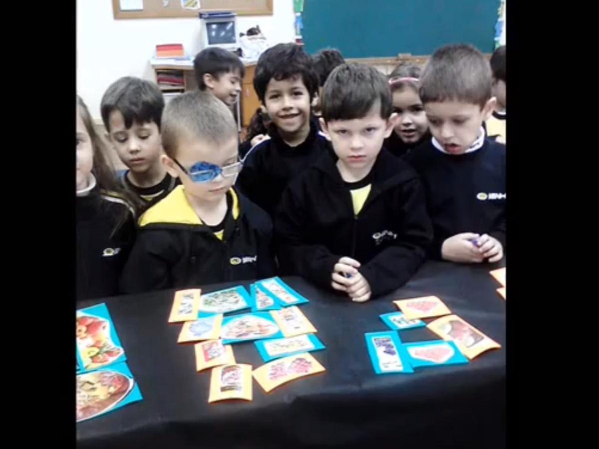Brincando de mercado, a turma pôde fixar vocábulos relacionados a comidas em Inglês, assim como ter a vivência de vender e comprar os alimentos, utilizando frases relacionadas ao tema e utilizando dinheiro criado por eles, somando e dando troco quando necessário.