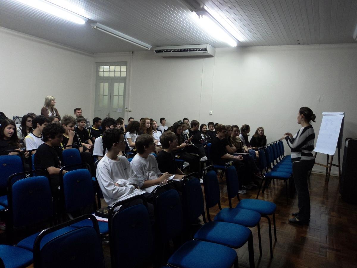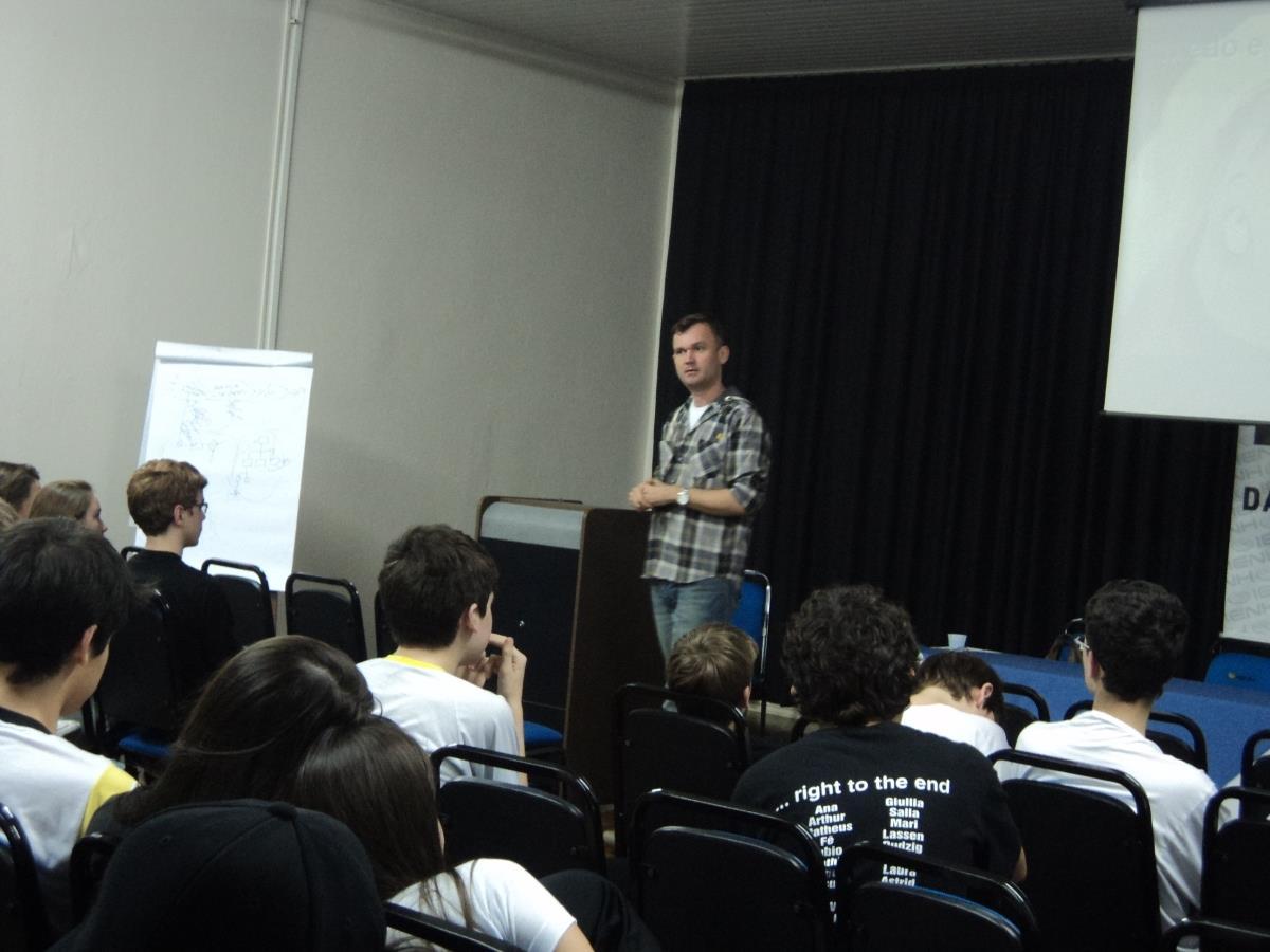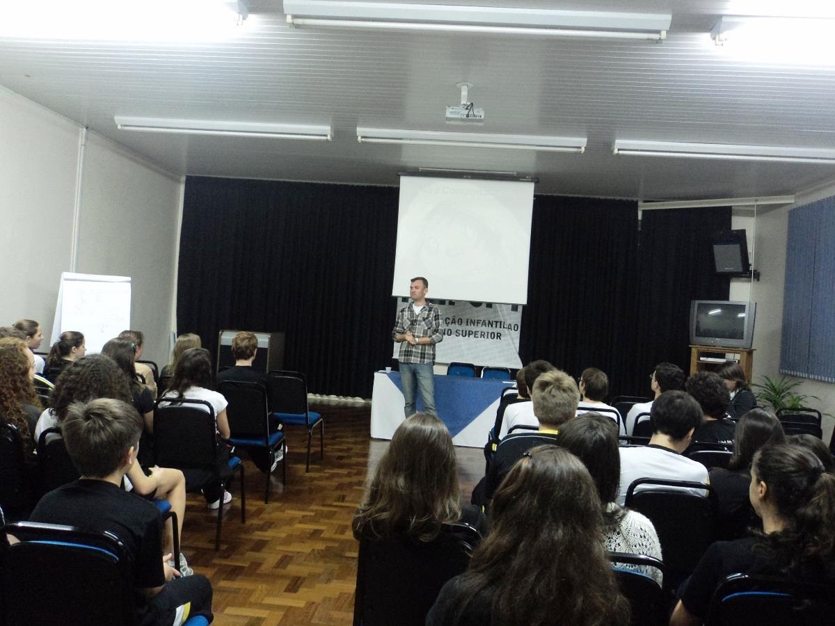 Assim, na tarde de 02 de agosto, a Psicóloga do Ensino Médio – Renata Roos e o Professor de Sociologia – Daniel Gewehr palestraram sobre o tema: medo. Daniel trouxe personagens históricos como Adolf Hitler e Átila Rei dos Hunos. “Não recebemos um manual ao nascer que esclarece como se deve viver em um mundo com medo. Ele está presente na história e é utilizado pelo ser humano para comandar e atemorizar”, explica o Professor.