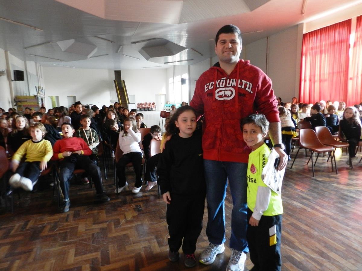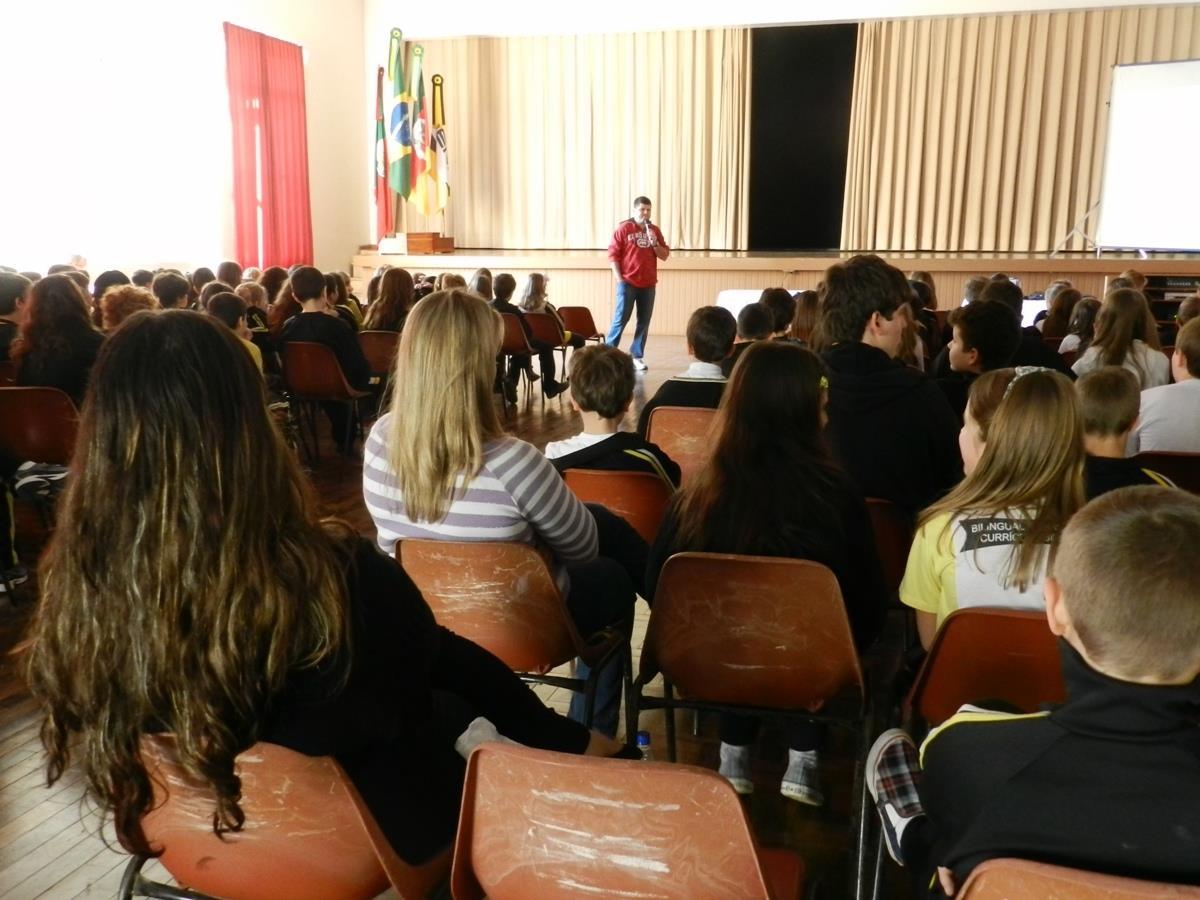 As turmas vêm trabalhando sobre o assunto em sala de aula e nas aulas de Educação Física, conhecendo as diferentes modalidades esportivas. Todos estavam atentos e interagiram com o palestrante.
