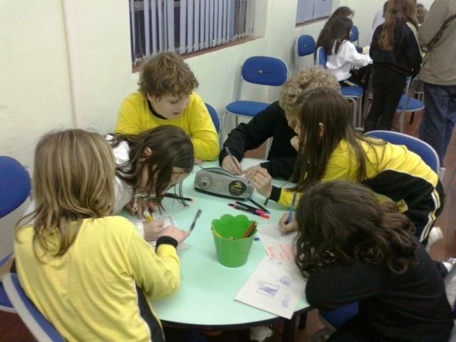 As turmas criaram pequenos textos sobre a importância da amizade, em Português e Espanhol e desenharam suas ideias filosóficas sobre o assunto tratado.
