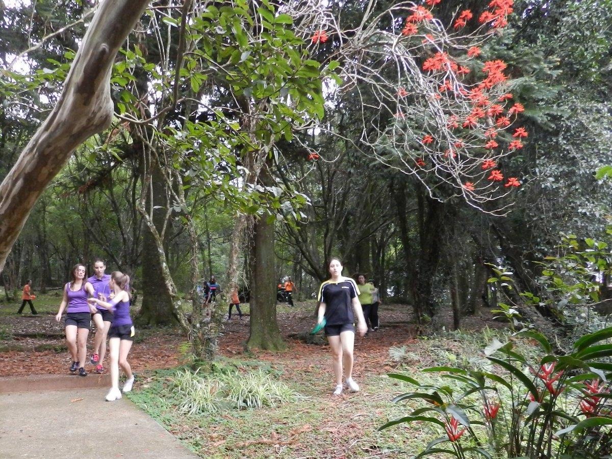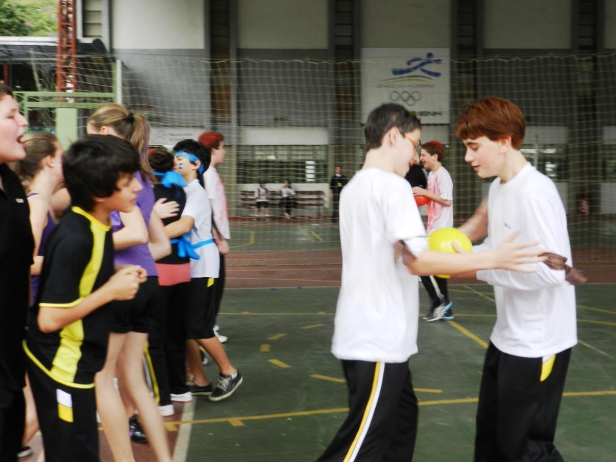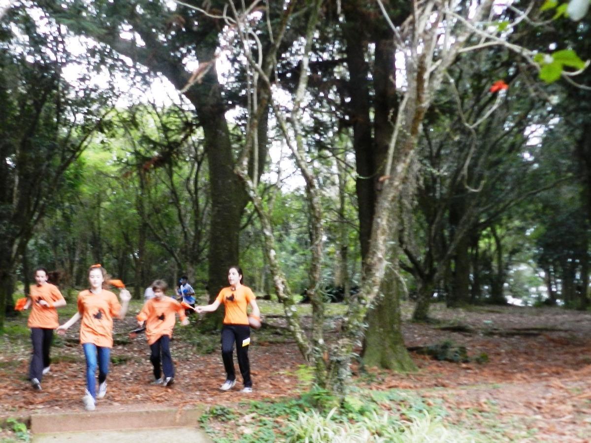 As últimas atividades envolveram a habilidade da atenção para compreender o objetivo. Em filas, os estudantes se revezavam para buscar os balões do outro lado das Quadras de Esporte e estourá-los com o auxílio do outro colega do grupo. Após essa atividade todos correram para o Morrinho (área de preservação ambiental) onde precisavam localizar bandeirinhas de diversas cores com níveis diferentes de dificuldades.