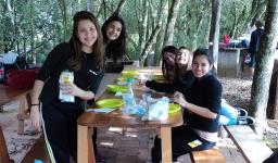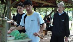 Após o almoço, feito pelos próprios alunos, as atividades da parte da tarde eram livres. O professor Márcio auxiliou nas atividades esportivas que acabaram envolvendo a todos.