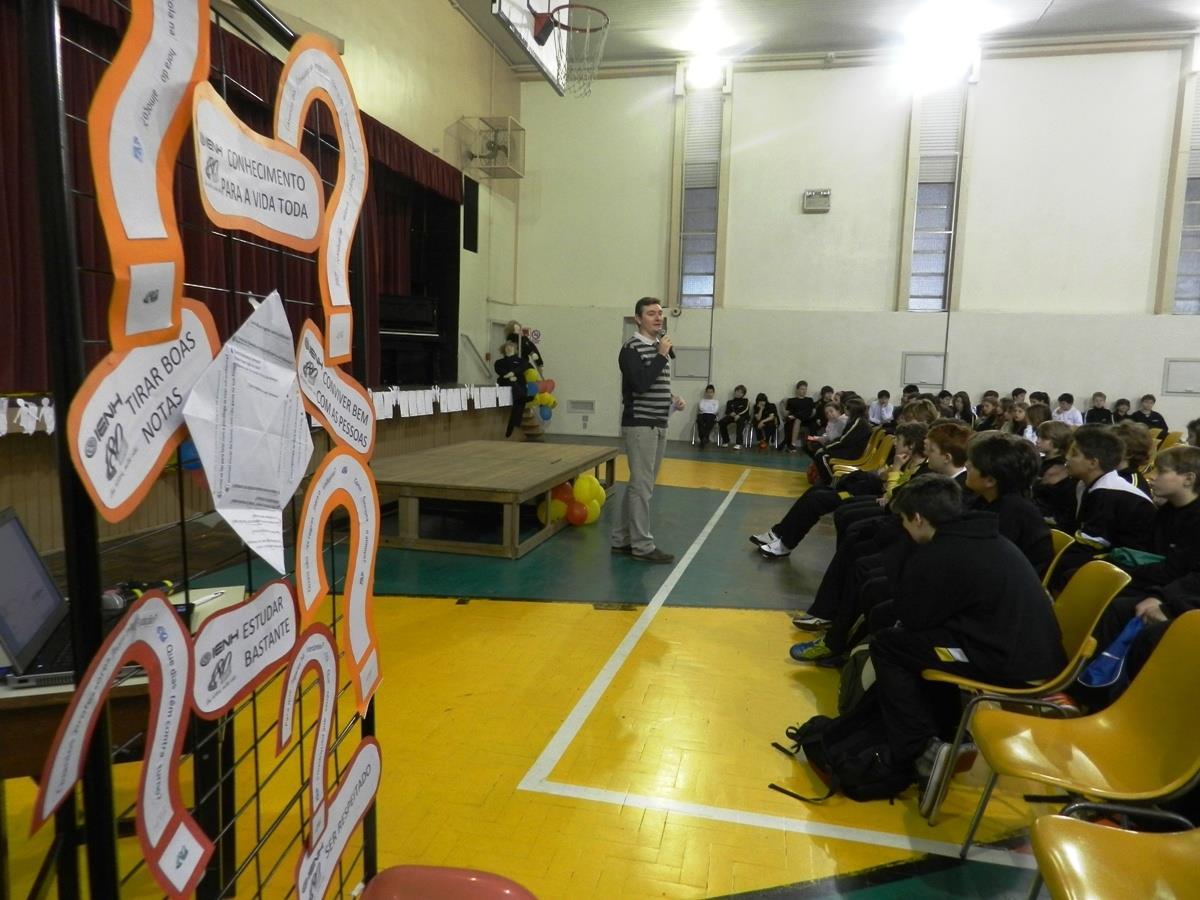 Estudantes das 6ªs séries, que no ano anterior participaram do mesmo processo, tocaram instrumentos, cantaram, dançaram e realizaram apresentações com fantoches, em um momento de boas-vindas. Nesse momento, a participação de mais dois estudantes precisa ser lembrada: João Marcos Trierweiler Henckel, da 8ª série C e Luiz Felipe Schmidt Birk, da 1ª série D realizaram uma bela apresentação instrumental.
