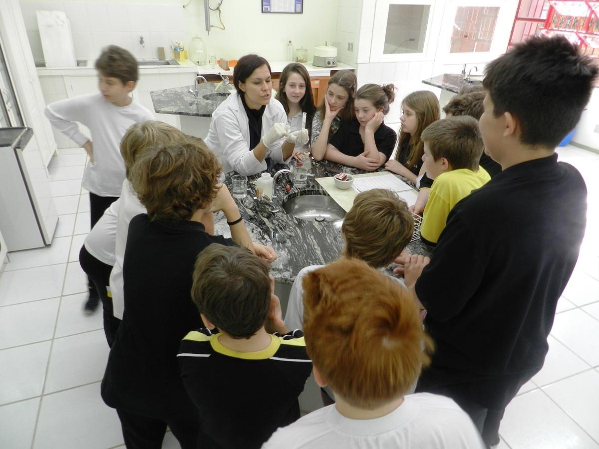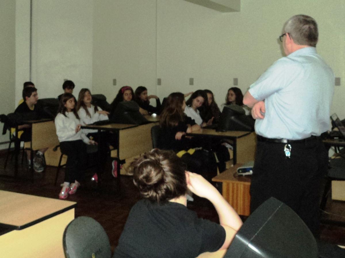 Durante todo o dia o grupo participou de oficinas de tecnologia, matemática e teatro, atividades nos laboratórios de ciências e atividades esportivas no campo esportivo com professores da Fundação Evangélica.