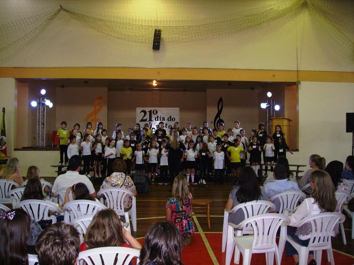Após a abertura do evento, o grupo participou de oficinas de jogos e libras. O ensaio do Coralão reuniu todos os estudantes presentes que após seguiram para o lanche. A partir das 16h45min ocorreram as apresentações de cada escola e ao final todos os grupos participantes (Coralão) cantaram três canções: Carimbador Maluco, Trenzinho Caipira – Villa Lobos e Vai Abóbora do folclore brasileiro