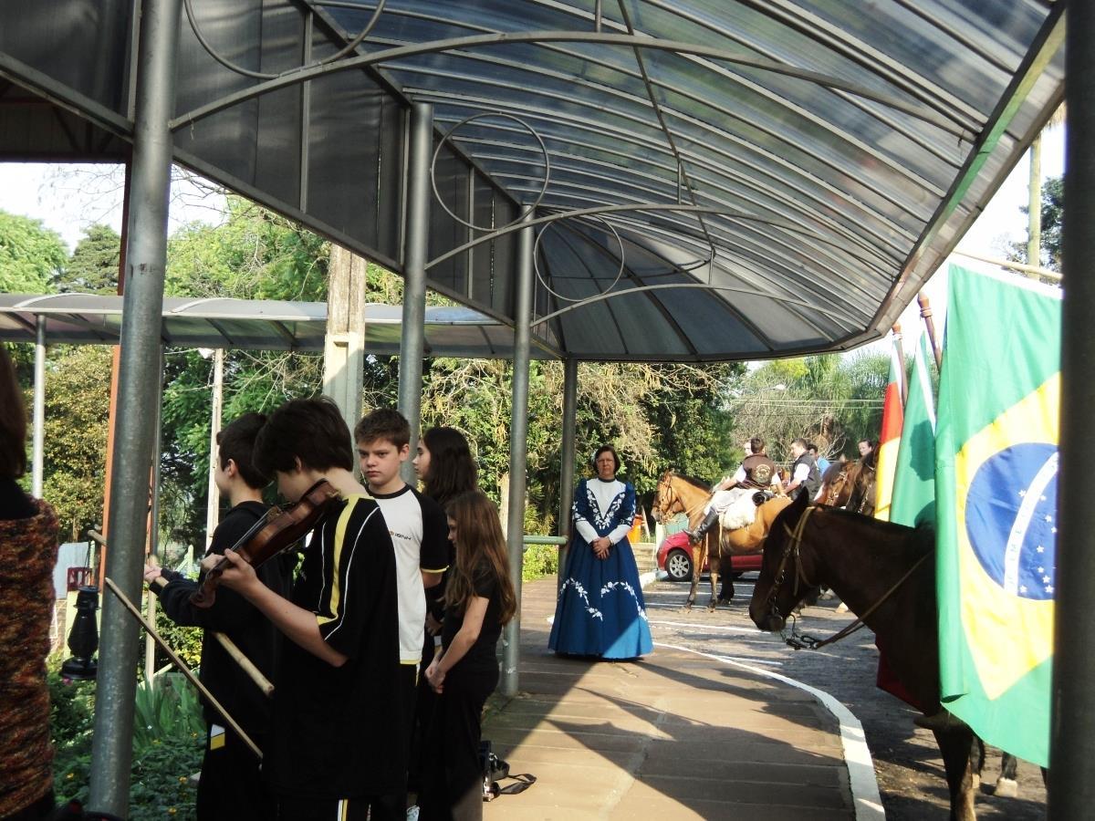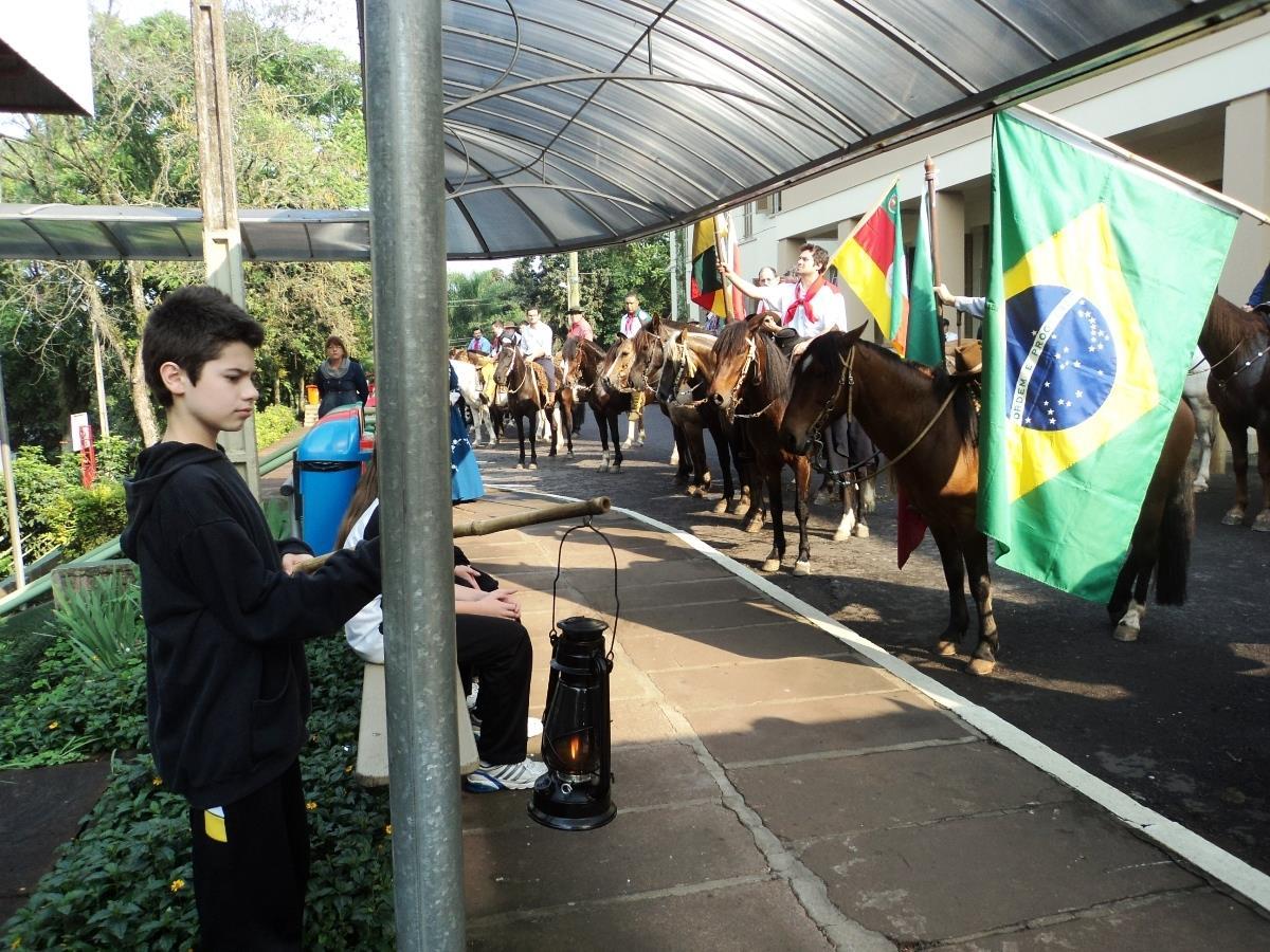 A chegada dos participantes foi aguardada com ansiedade pelos estudantes. Algumas turmas preparam homenagens aos cavalarianos, o Hino Nacional foi cantado por todos e na Fundação Evangélica o estudante Luiz Felipe Schmidt Birk executou o Hino do Rio Grande do Sul no violino e entre canções e poesias, o momento permitiu a valorização da cultura gaúcha e reforçou o tradicionalismo.