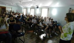 O grupo assistiu a uma palestra com o colunista e diretor fotográfico do Jornal NH e mais antigo repórter fotográfico do Rio Grande do Sul – Alceu Feijó, que falou sobre as suas experiências com o Rio, registrando matérias e fotografias desde 1949.