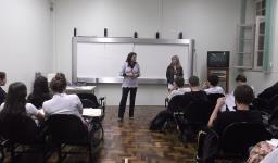 A Supervisora Escolar – Marga Inês Schmitt Werkmeister e a Psicóloga Educacional do Ensino Médio – Renata Roos falaram sobre os aspectos relacionados ao Ensino Médio, entre eles: ensino de qualidade, infraestrutura e segurança, metodologia diferenciada, aprendizagem intensificada com aulas de reforço e os Projetos Socioambientais.