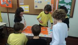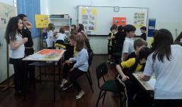 Na manhã de 22 de agosto, a turma recebeu os 3ºs anos da Unidade em uma Feira dos Municípios da Bacia hidrográfica. Primeiro os alunos assistiam à apresentação das informações de cada município para depois participar dos jogos elaborados. Alguns grupos também levaram pratos típicos para degustação.
