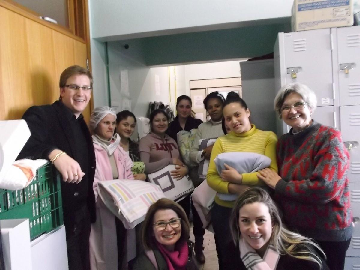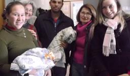 No dia 28 de agosto, representantes do Grupo Ellos, formado por mulheres voluntárias da IENH, integrantes da Oficina do Brinquedo, juntamente com Eduardo e Juliana Martin da Entremalhas, realizaram a entrega de 15 cobertas para as mães do Neonatal e do setor de Maternidade do Hospital Geral de Novo Hamburgo.
