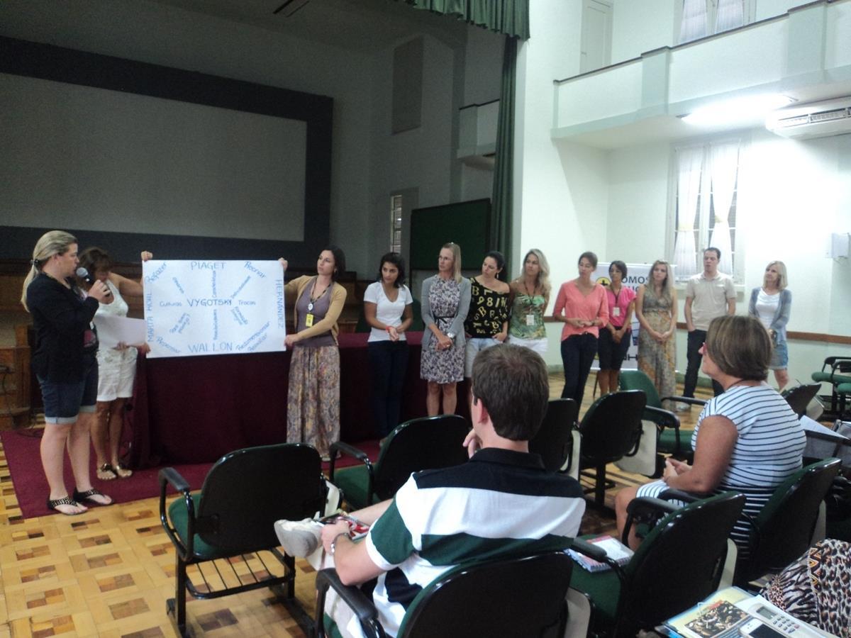 Na quinta-feira, os professores apresentaram as propostas da Educação Infantil e do Ensino Médio e estudaram a Proposta Pedagógica da IENH, além de terem momentos livres e de planejamento por área, ano e nível.