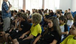 Para encerrar a Vice-Diretora de Educação Básica e Coordenadora da Unidade – Déborah Cassel conversou com as turmas sobre algumas combinações para o ano referente a uniformes, escaninhos e outros acertos.