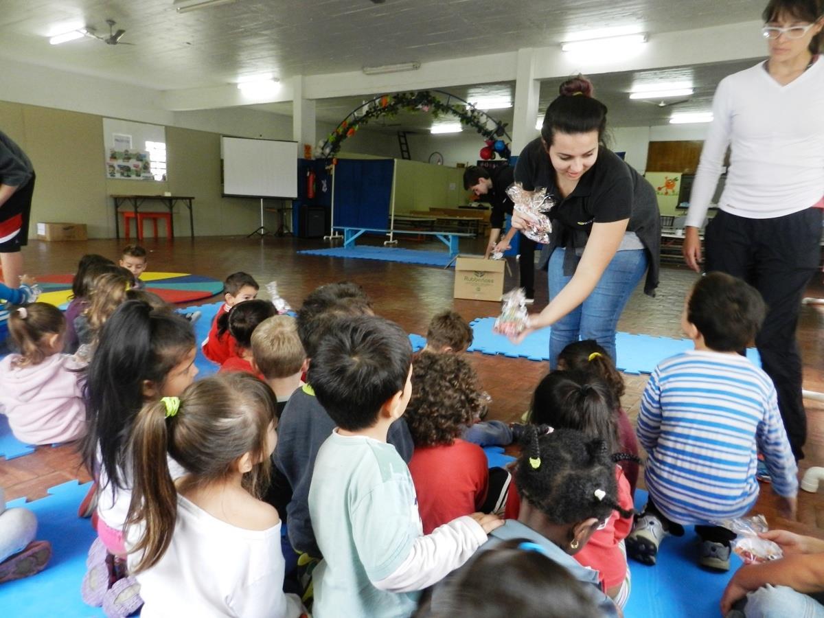 Estudantes da IENH – Unidade Fundação Evangélica arrecadaram balas, pirulitos e chocolates para organizarem ninhos de Páscoa. A atividade foi uma das provas da Gincana promovida pelo Grêmio Estudantil Castro Alves – GECA.