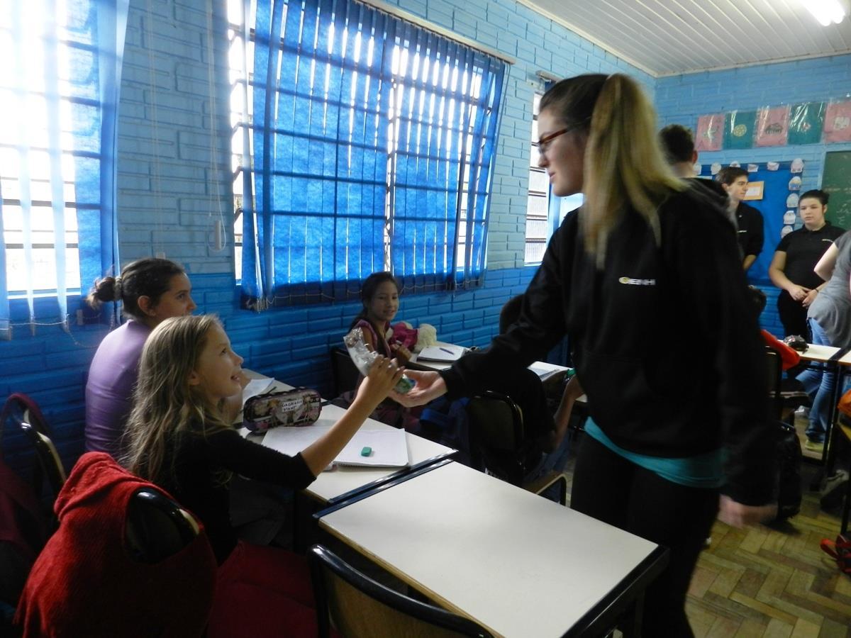 Cinco estudantes realizaram a entrega na Keli Meise Machado, no Lar da Menina, na Associação Beneficente Evangélica da Floresta Imperial – ABEFI, na Escola Raio de Sol, na Escola de Educação Infantil Cinderela, no Lar João e Maria, no Lar de Idosos São Vicente, no Ação Encontro e na Escola Arnaldo Reinhardt.