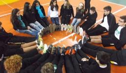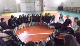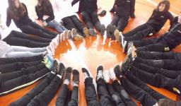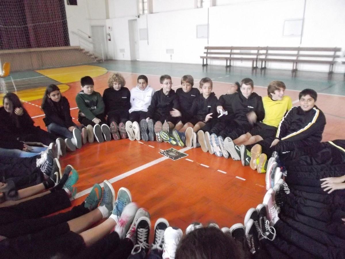 Depois o grupo foi reunido no ginásio, onde, refletindo sobre a história da Tribo Africana "Ubuntu", foi retomada com os alunos a necessidade de união, ajuda mútua e cumprimento dos Princípios e Valores da IENH, considerando o Guia do Estudante.