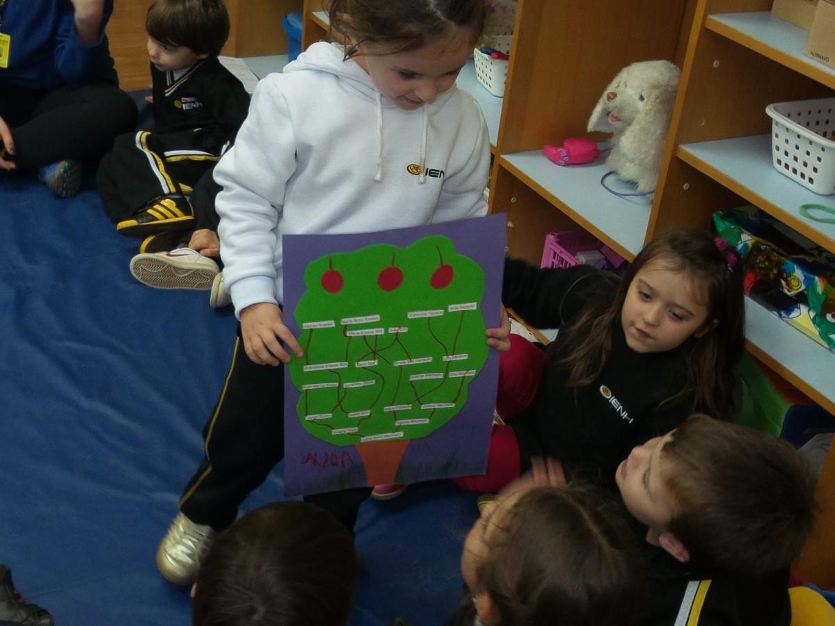 Na segunda semana depois das férias, os alunos trouxeram as árvores genealógicas prontas e realizaram a apresentação da mesma em sala de aula para os colegas. Os estudantes contaram aos colegas sobre as suas famílias, casas, entre outros assuntos. As árvores genealógicas estão expostas nos corredores da Unidade, podendo ser conferidas por todos os alunos e professores.