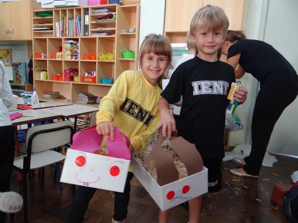 Para confecção dos ninhos, os alunos, que foram auxiliados pelas Professoras Liliane Petry Bohlke e Cristiane Ely Lemke, utilizaram caixas, papéis, colas coloridas, canetinhas e glitter. Todos os ninhos ganharam a carinha e as orelhas do Coelho.