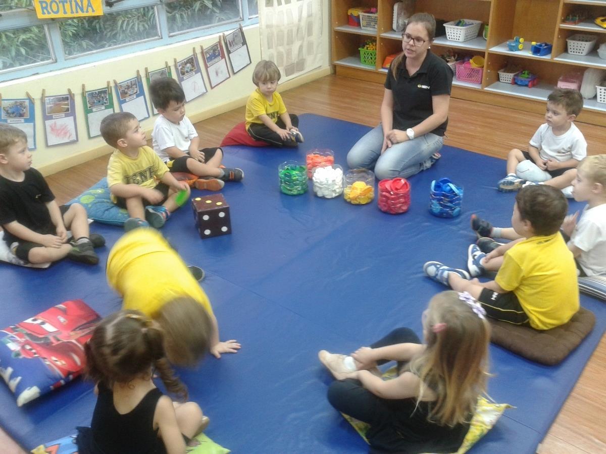 Visando oportunizar aos alunos diferentes situações que envolvam conceitos matemáticos, a Professora Ana Claudia Ferreira Schenkel, por meio de jogos e brincadeiras, introduziu conteúdos matemáticos aos alunos do Nível 3B da Educação Infantil da IENH – Unidade Pindorama.
